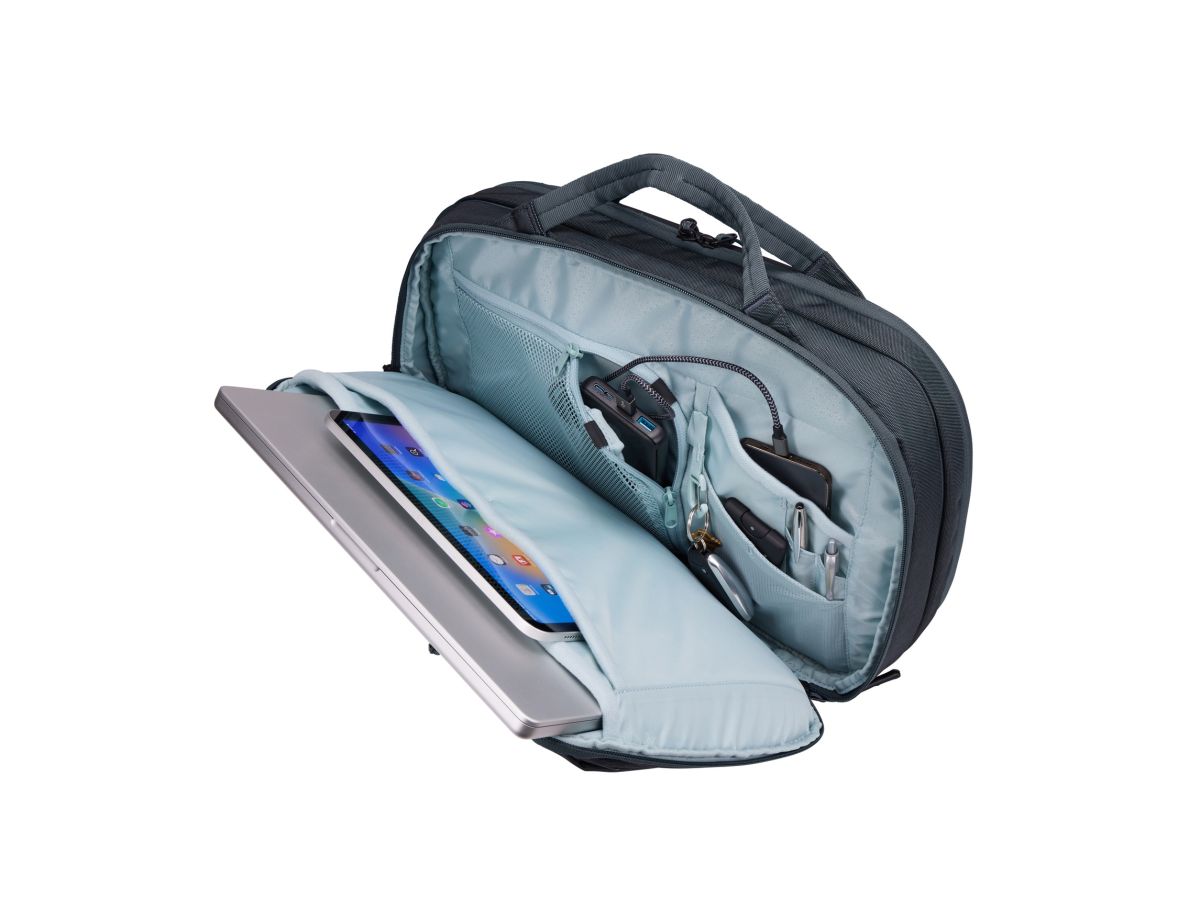 V zadnej časti je polstrované vrecko na uloženie 12,9" tabletu, 16" notebooku a drobného príslušenstva - obsahuje veľké množstvo menších vreciek a pútok. Tiež je vybavená vreckom PowerPocket pre pohodlné nabíjanie zariadená na cestách, Všetko vybavenie je prístupné, bez ohľadu na to, či máte tašku ako batoh, alebo nie.