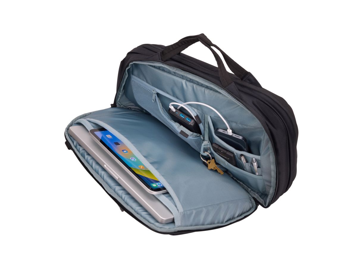 V zadnej časti je polstrované vrecko na uloženie 12,9" tabletu, 16" notebooku a drobného príslušenstva - obsahuje veľké množstvo menších vreciek a pútok. Tiež je vybavená vreckom PowerPocket pre pohodlné nabíjanie zariadená na cestách, Všetko vybavenie je prístupné, bez ohľadu na to, či máte tašku ako batoh, alebo nie.