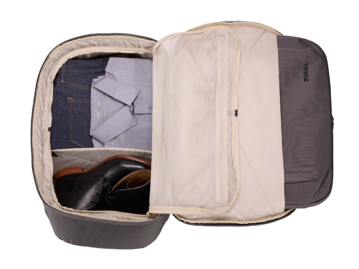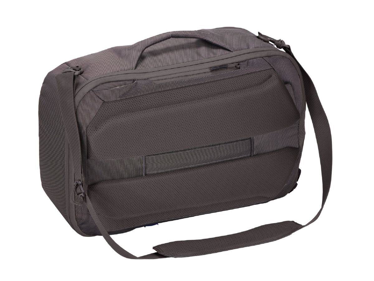 Praktická a moderná cestovná taška Thule Subterra 2 sa ľahko premení na pohodlný batoh, v chrbtovej časti má totiž skryté ramenné popruhy. Taška je tak vhodná na každodenné používanie.