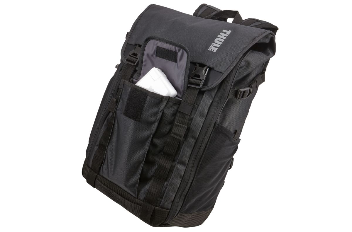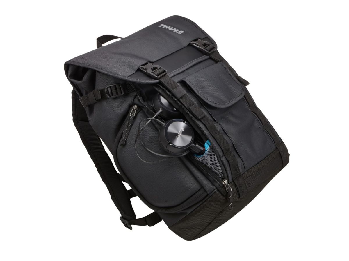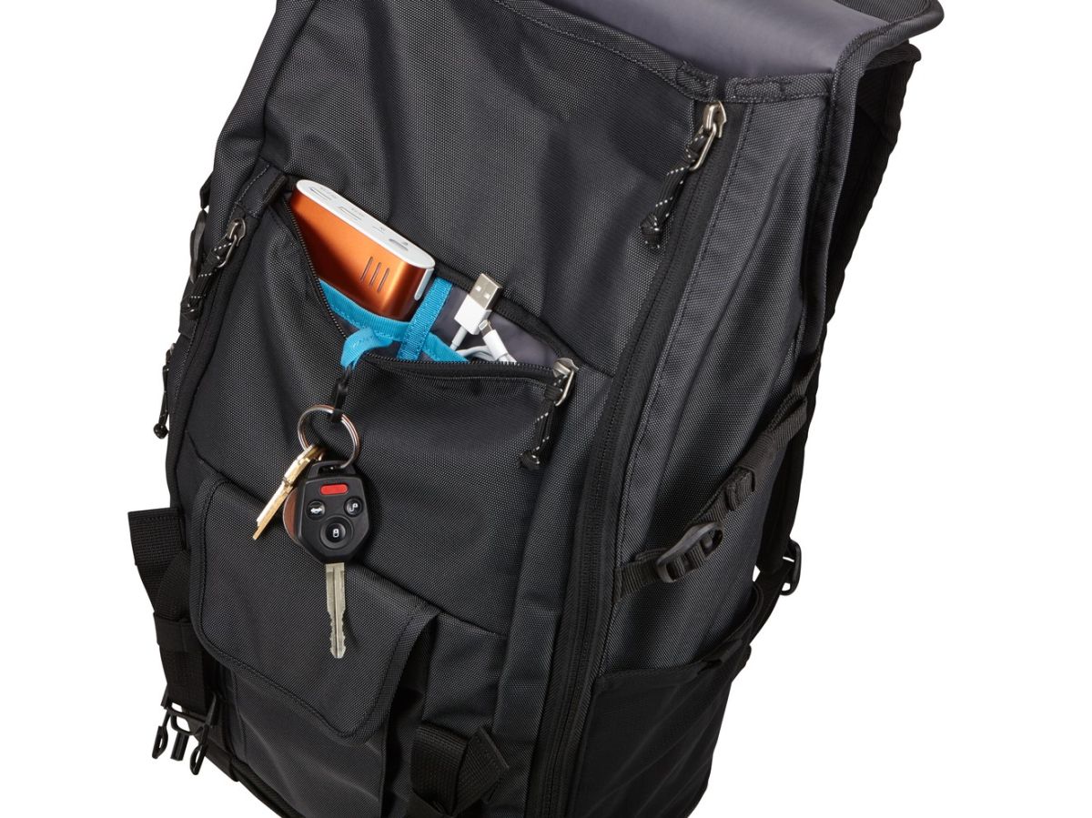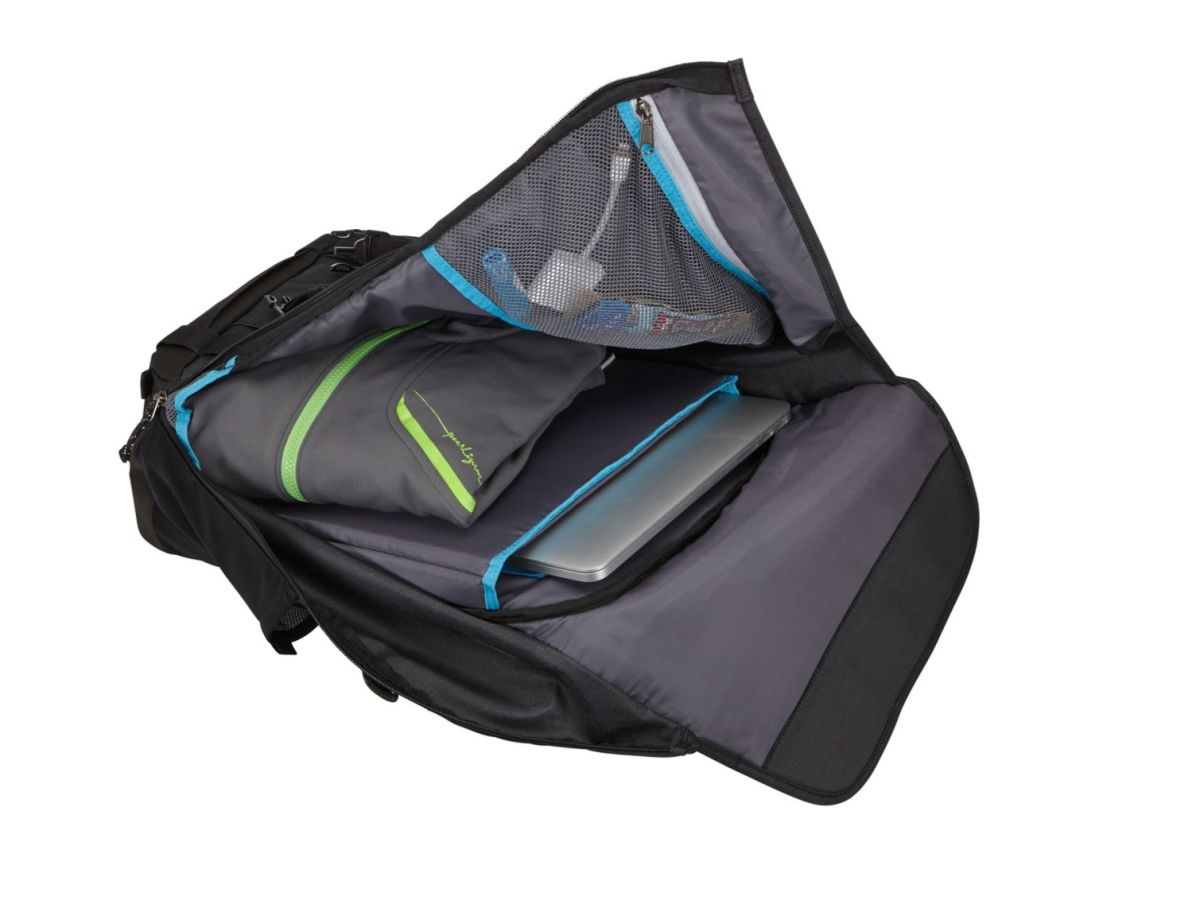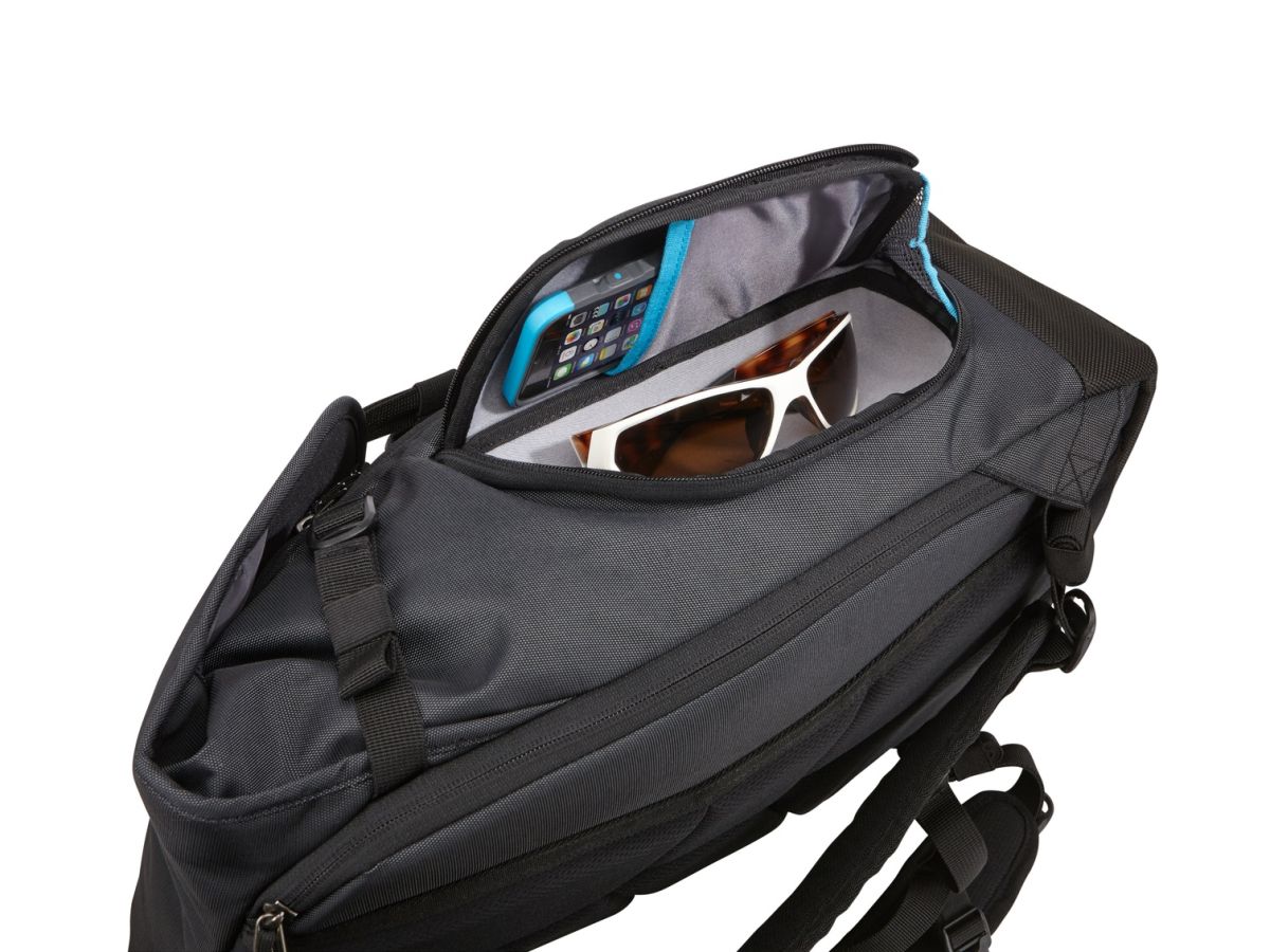 Batoh Thule Subterra sa hodí aj na cestovanie, integrovaný pásik vám umožní zavesiť batoh na rukoväť batožinu na kolieskach.
